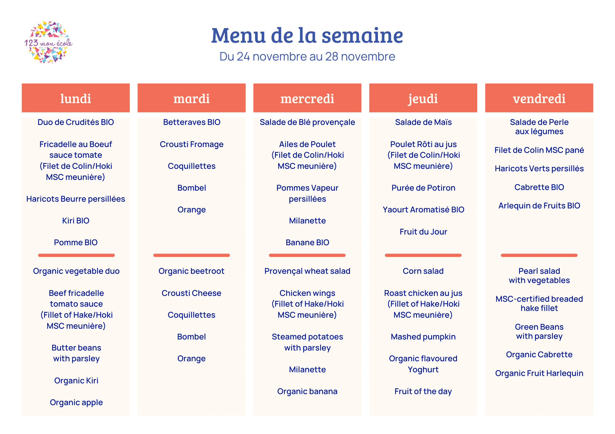 Menu de la semaine